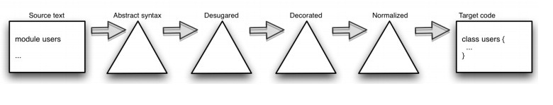 Model Transformer. It performs several model-to-model transformation such as, dusugaring , normalizing , decorating. As such, it annotate more context to AST.